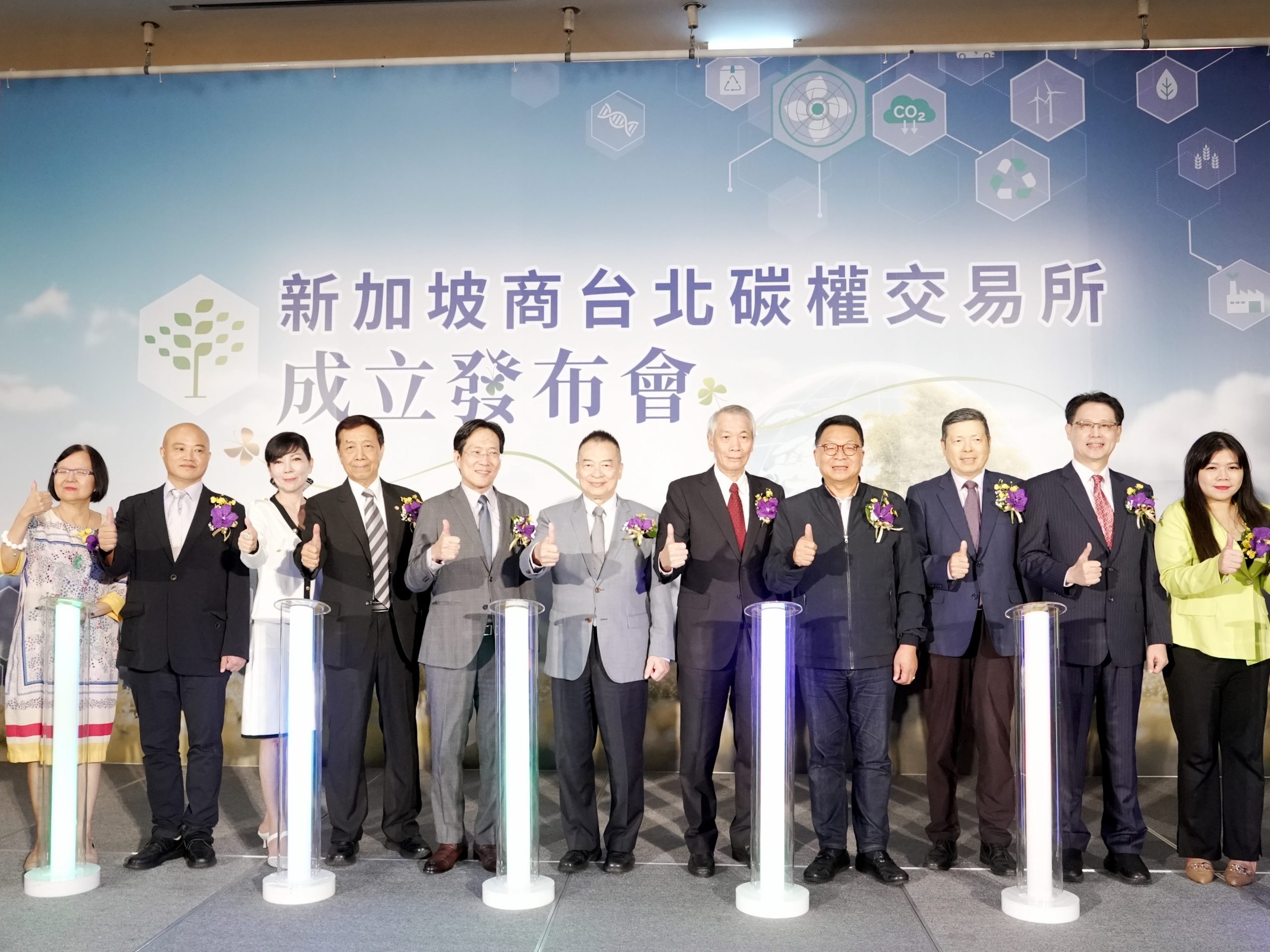 「 新加坡商 台北碳權交易所」的成立發布會不但有來自全球各地的台商企業代表,更聚集包括關切環保時事的立法委員陳歐珀委員、張其祿委員、 亞洲展覽會議聯盟葉明水榮譽主席、 台灣產業永續發展協會何毅夫理事長、黃壽佐董事長、陳梓立總經理、韋伯韜監察人、楊聰榮教授、鄧秀寶董事、鄭家茵執行長、徐品淳營運長等重量級貴賓共同進行啟動儀式;也共同見證 新加坡商台北碳權交易所與亞太碳資產服務股份有限公司、台灣產業永續協會分別簽訂國際碳權開發與交易的戰略合作,開啟碳權買賣有了實質的交易平台,更讓企業各界猶如吃下定心丸般保住了海內外訂單!